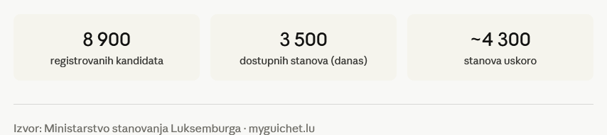 Pristup pristupačnom najamnom stanovanju postaje lakši nego ikad. Kandida-podstanari koji se prvi put prijavljuju mogu podneti zahtev direktno putem portala MyGuichet.lu i izabrati socijalnog stanodavca koji će voditi njihov predmet. Za one koji su već upisani u registar, nikakva dodatna akcija nije potrebna — svi postojeći predmeti i dalje se normalno obrađuju.